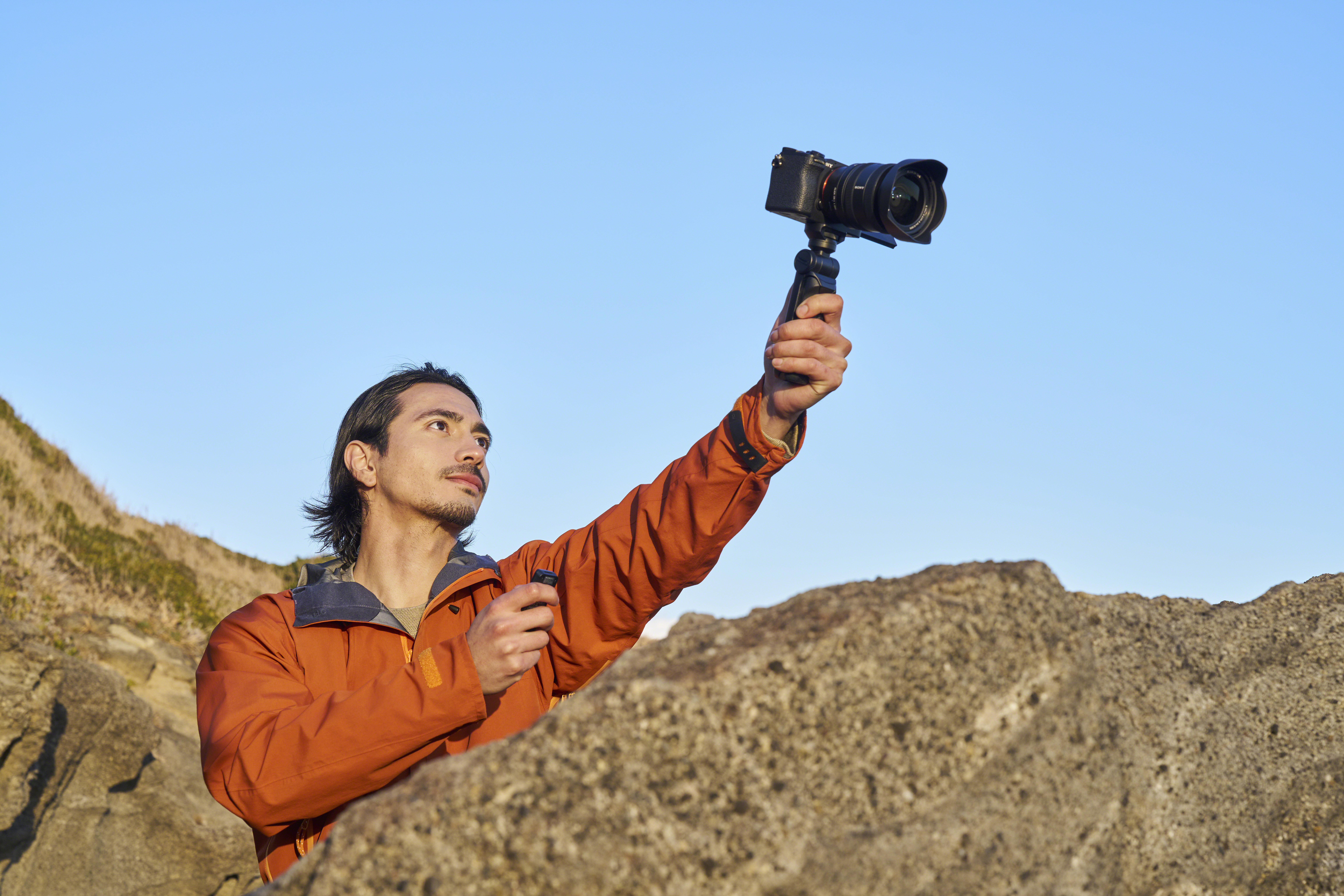 Der Sony GP-VPT3 Bluetooth-Griff mit abnehmbarer Fernbedienung ist ein wahres Multitalent für moderne Content Creator. Ob Vlogging, Selfies oder freihändige Aufnahmen – mit diesem cleveren Zubehör gelingen professionelle Aufnahmen jederzeit und überall. Dank durchdachtem Design vereint der GP-VPT3 drei Funktionen in einem Gerät: Handgriff, Mini-Stativ und kabellose Fernbedienung.