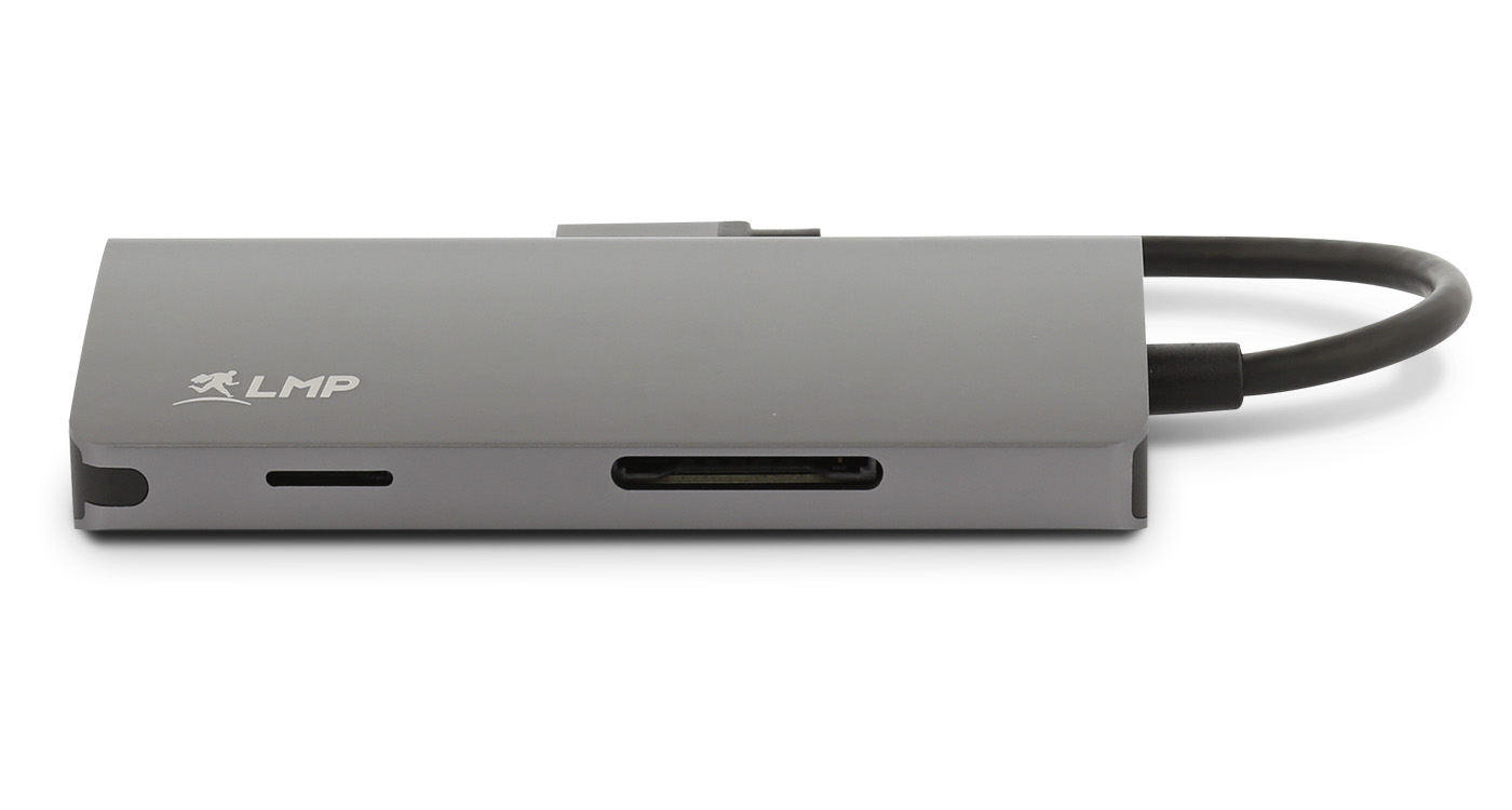 Das LMP USB-C Mini-Dock kann als digitale Version eines "Schweizer Taschenmessers" bezeichnet werden, wenn es um Vielseitigkeit und Benutzerfreundlichkeit geht. Mit insgesamt 8 Anschlüssen können Sie Daten austauschen oder übertragen, eine schnelle Internet- oder Netzwerkverbindung herstellen, einen externen Monitor mit einer Auflösung von bis zu 4K verwenden oder gleichzeitig Ihr Smartphone oder Tablet aufladen und Ihren Laptop mit Strom versorgen. All diese Anschlüsse sind in einem eleganten Dock aus Aluminium untergebracht.