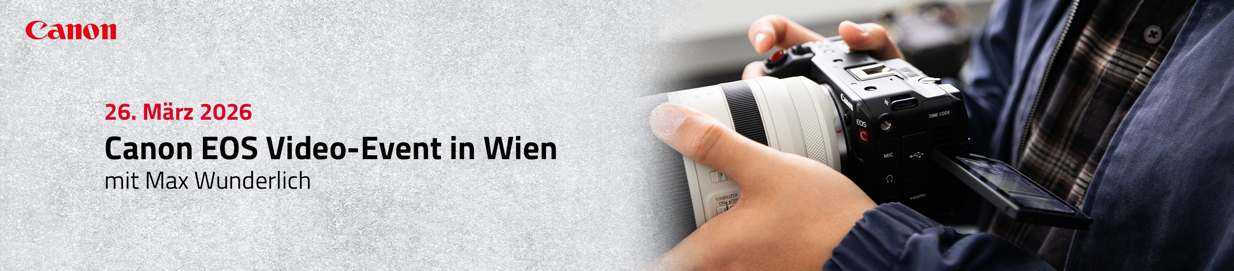 Cineastischer Look in der PraxisDas Canon EOS Video-Event in Wien mit Max Wunderlich richtet sich an alle, die ihre Videoproduktion gezielt professionalisieren möchten. Im Zentrum steht die Canon EOS C50 und die Frage, wie ein cineastischer Look nicht zufällig entsteht, sondern bewusst gestaltet wird. Praxis und Theorie greifen dabei direkt ineinander.