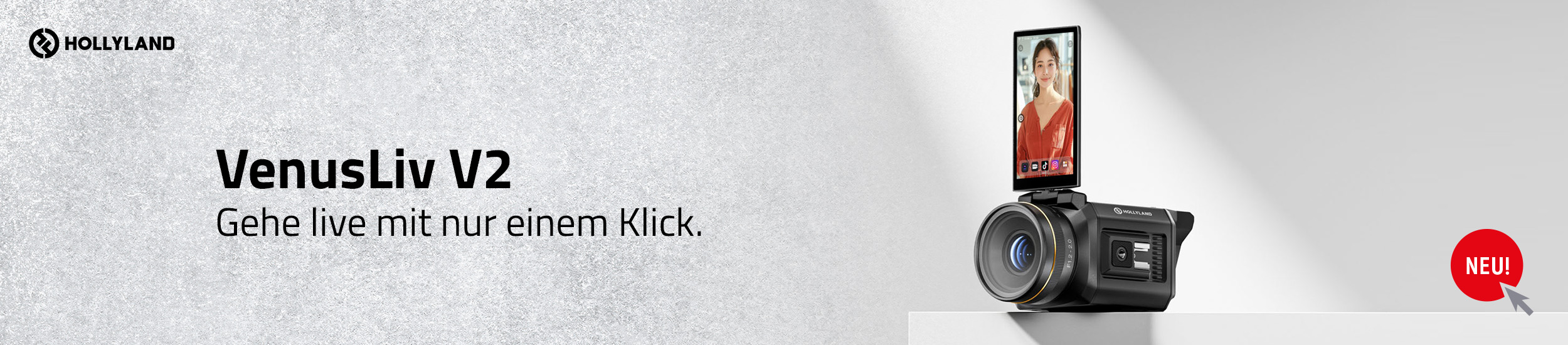 Die VenusLiv V2 ist mit dem benutzerfreundlichen HollylandOS ausgestattet und bietet eine Smartphone-ähnliche Bedienung. Der drehbare 5-Zoll-Touchscreen ist mit der Farbgenauigkeitssoftware CalMAN kalibriert und kann zur Echtzeitüberwachung oder zur Anzeige von Kommentaren und Szenenbedingungen verwendet werden. Sowohl horizontale als auch vertikale Live-Übertragungen und Aufzeichnungen werden unterstützt.