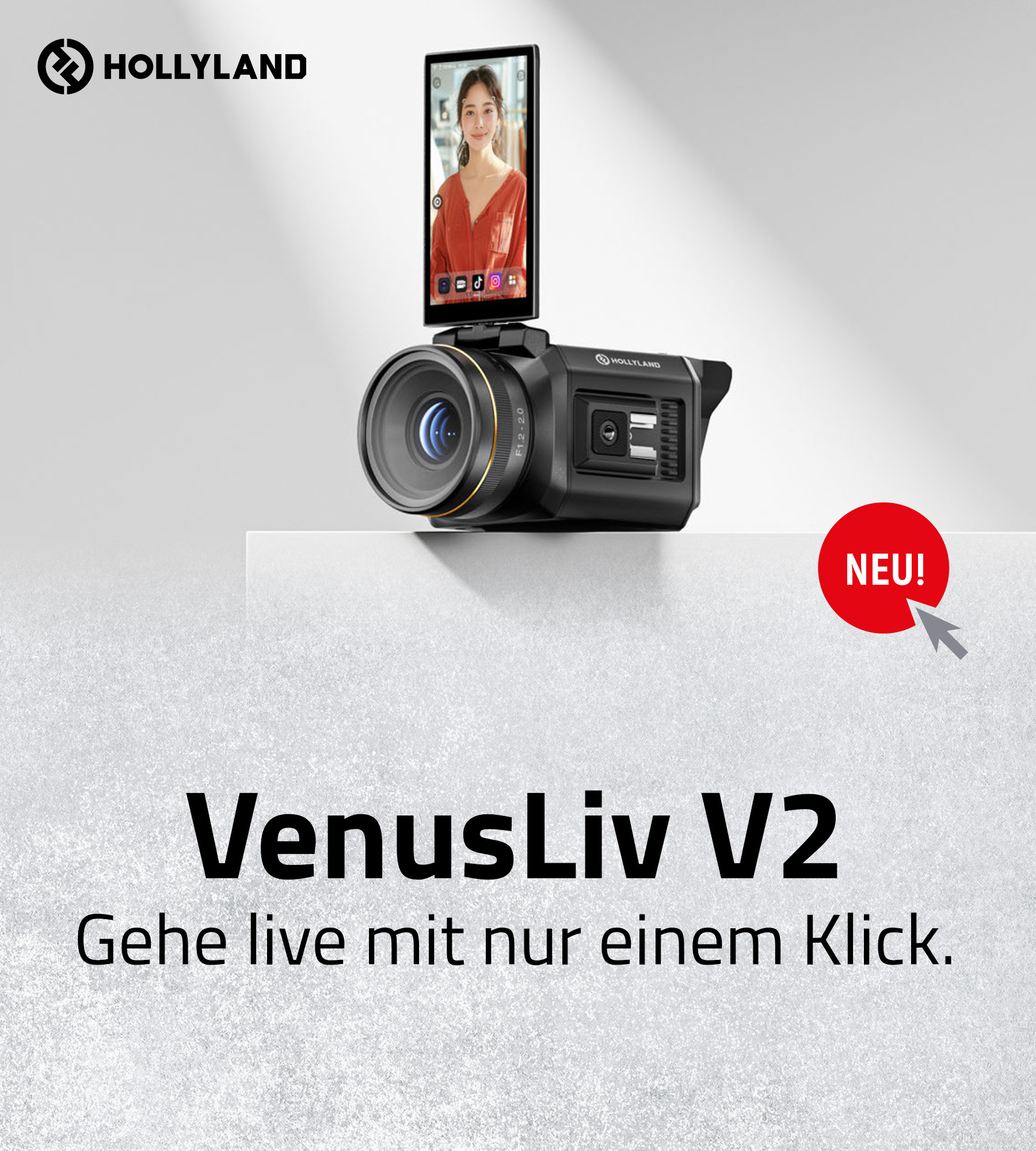 Die VenusLiv V2 ist mit einem hochwertigen 4K-Objektiv ausgestattet, das eine klare und detaillierte Live-Übertragung ermöglicht. Mit 12 MP effektiven Pixeln, einer Blende von f/1.2, einem Sichtfeld von 80 Grad und einer minimalen Fokusentfernung von nur 0,5 Metern liefert sie eine hervorragende Bildtreue für hochwertiges 4K30P-Streaming. Die leistungsstarke CPU und ISP in Kombination mit Hollylands eigenentwickelten Verarbeitungsalgorithmen garantieren ein nahtloses Streaming-Erlebnis mit herausragender Bildqualität, Klarheit und Farbwiedergabe.