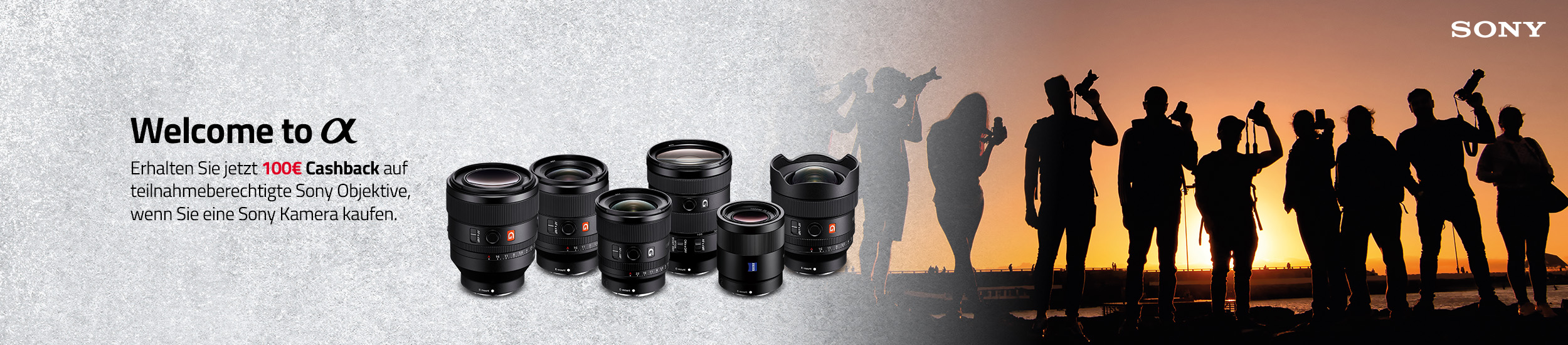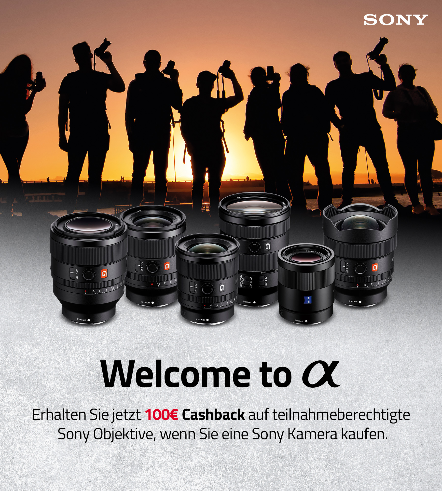 Erhalten Sie jetzt € 100 Cashback auf teilnahmeberechtigte Sony Objektive, wenn Sie eine Sony Kamera kaufen.