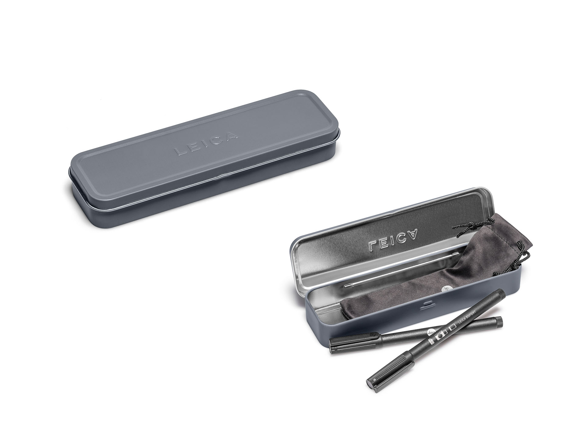 Bewahren Sie Ihre Erinnerungen auf Schnappschüssen mit Kommentaren oder Zeichnungen. Die beiden Permanentmarker mit unterschiedlichen Strichstärken eignen sich perfekt zum Beschriften von Bilderrahmen. In der grauen Metallbox mit eingeprägtem Leica Schriftzug sind sie immer griffbereit und sicher aufbewahrt.