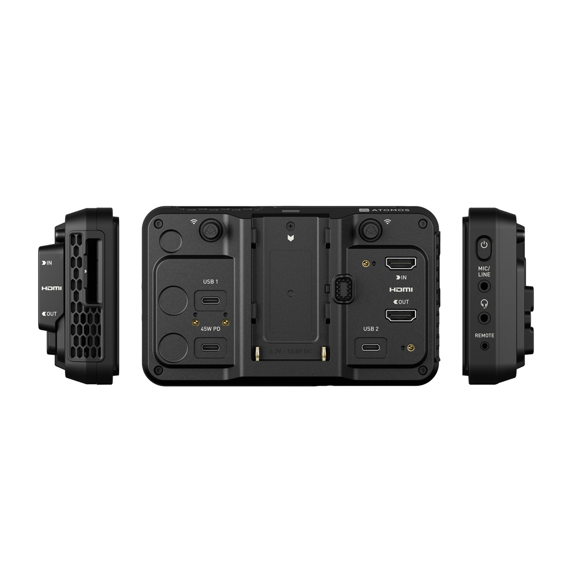 Die Stromversorgung erfolgt wahlweise über USB-C Power Delivery, NP-F-Akkus oder ein optionales Netzteil.