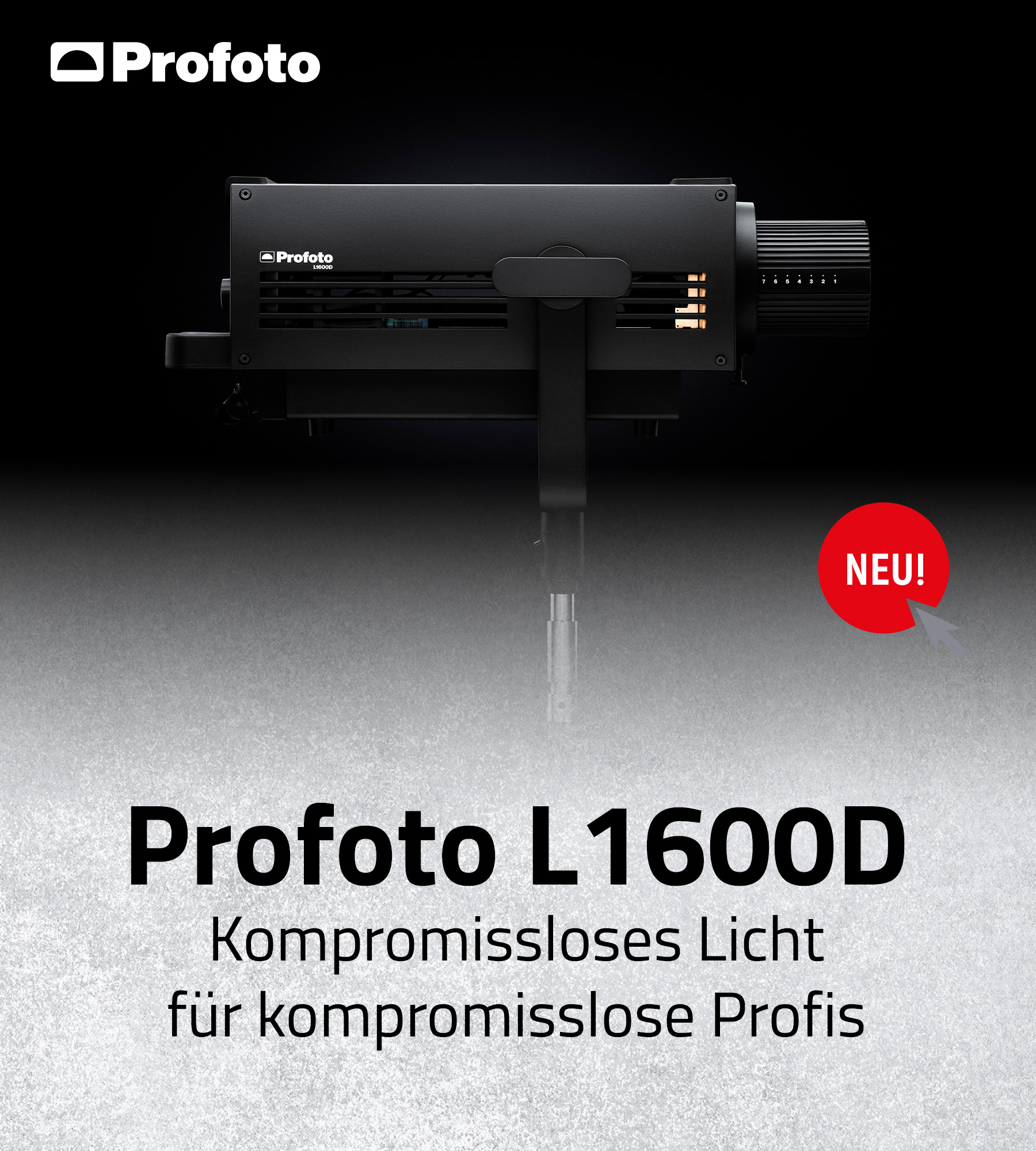 Die L1600D bietet mit ihren zwei Anschlussmöglichkeiten, dem Profoto- und Bowens-Mount, eine außergewöhnliche Vielseitigkeit. Besonders in Kombination mit dem Profoto-Lichtformersystem eröffnet sich ein nahezu unbegrenzter Spielraum für individuelle Lichtgestaltung. Zusätzlich sorgt der neuartige Bügel mit patentierter Schwenkfunktion für eine präzise und flexible Lichtführung – ideal für anspruchsvolle Film- und Fotoprojekte.